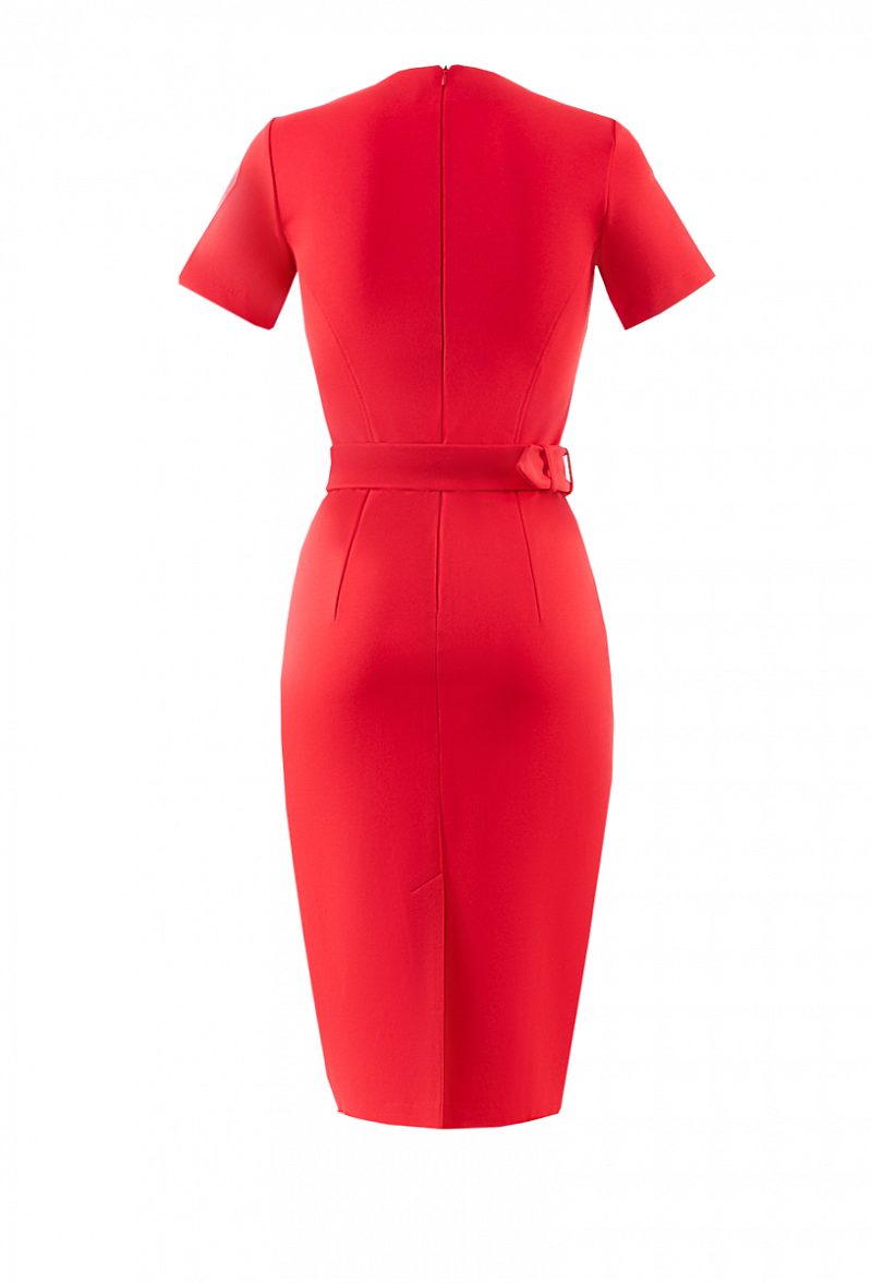 Трикотажное платье - футляр с поясом красное 01-02-20 SS