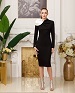Трикотажное платье-футляр с длинным рукавом, с воротником в виде розы, с контрастной вставкой, черный, белый