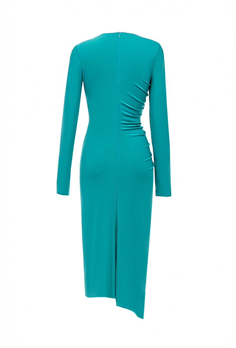 Трикотажное платье с фигурным вырезом бирюзовое 04-02-23 SS