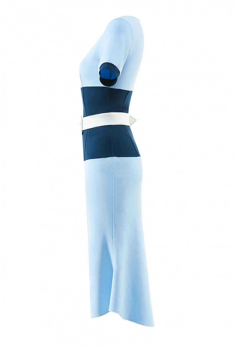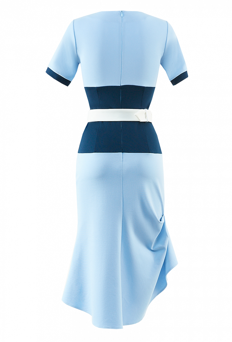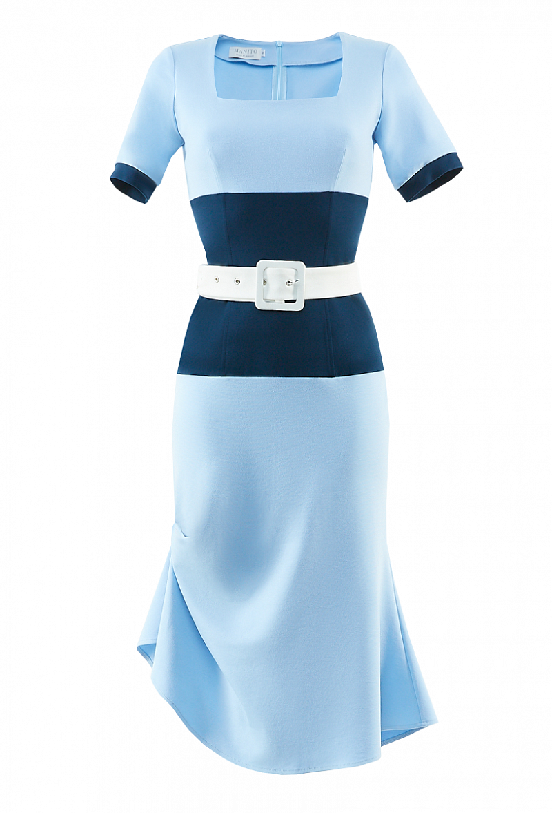 Трикотажное платье с поясом голубое 02-02-20 SS