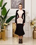 Трикотажное платье силуэта годе с отрезной талией, с отрезной юбкой и с контрастными вставками, черный, бежевый с красным кантом