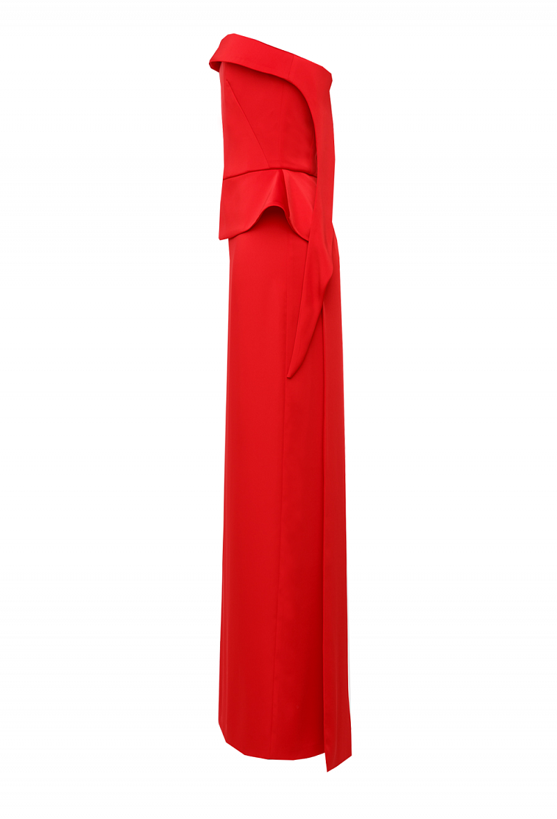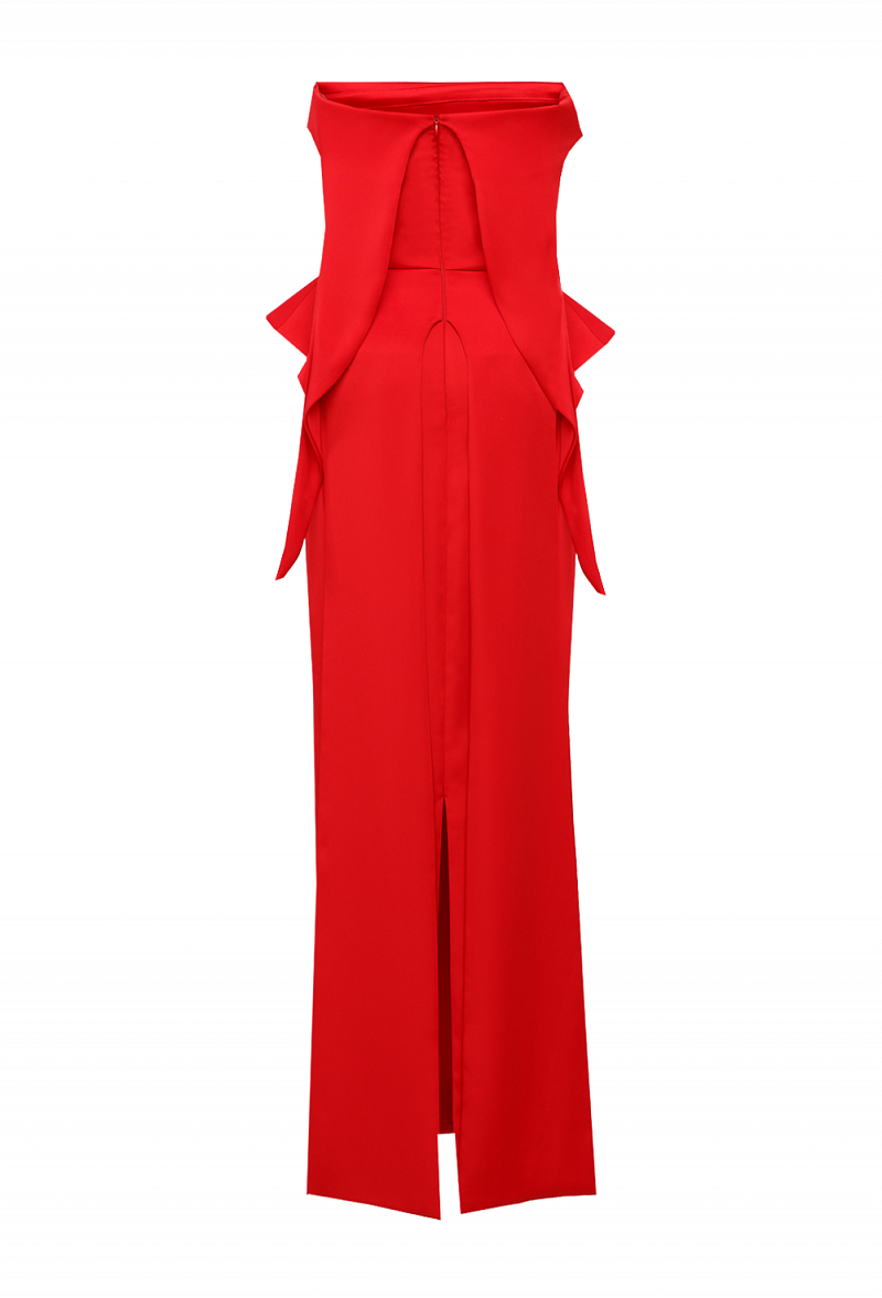 Вечернее платье красное декольте с корсетом 33 -19FW