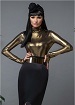 Водолазка из металлизированного крепа с длинными рукавами, в которых предусмотрено отверстие для большого пальца. Золото