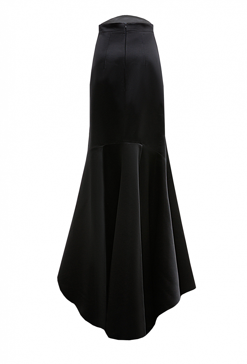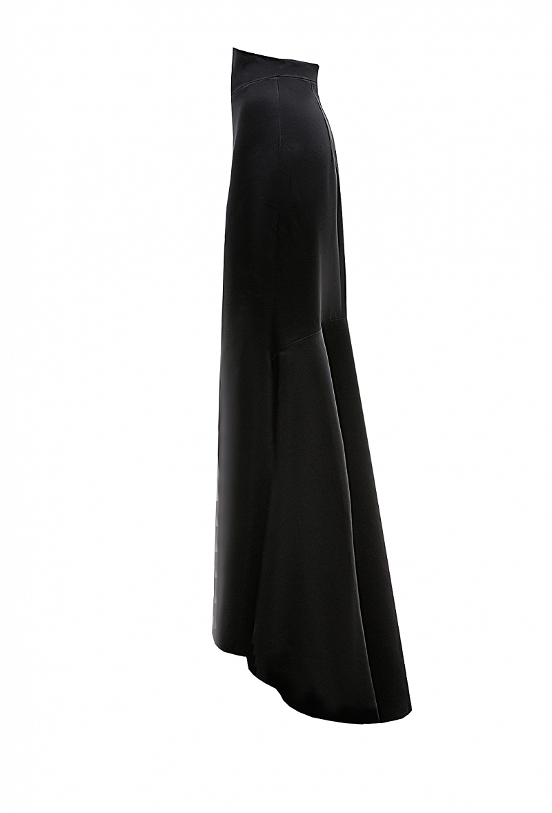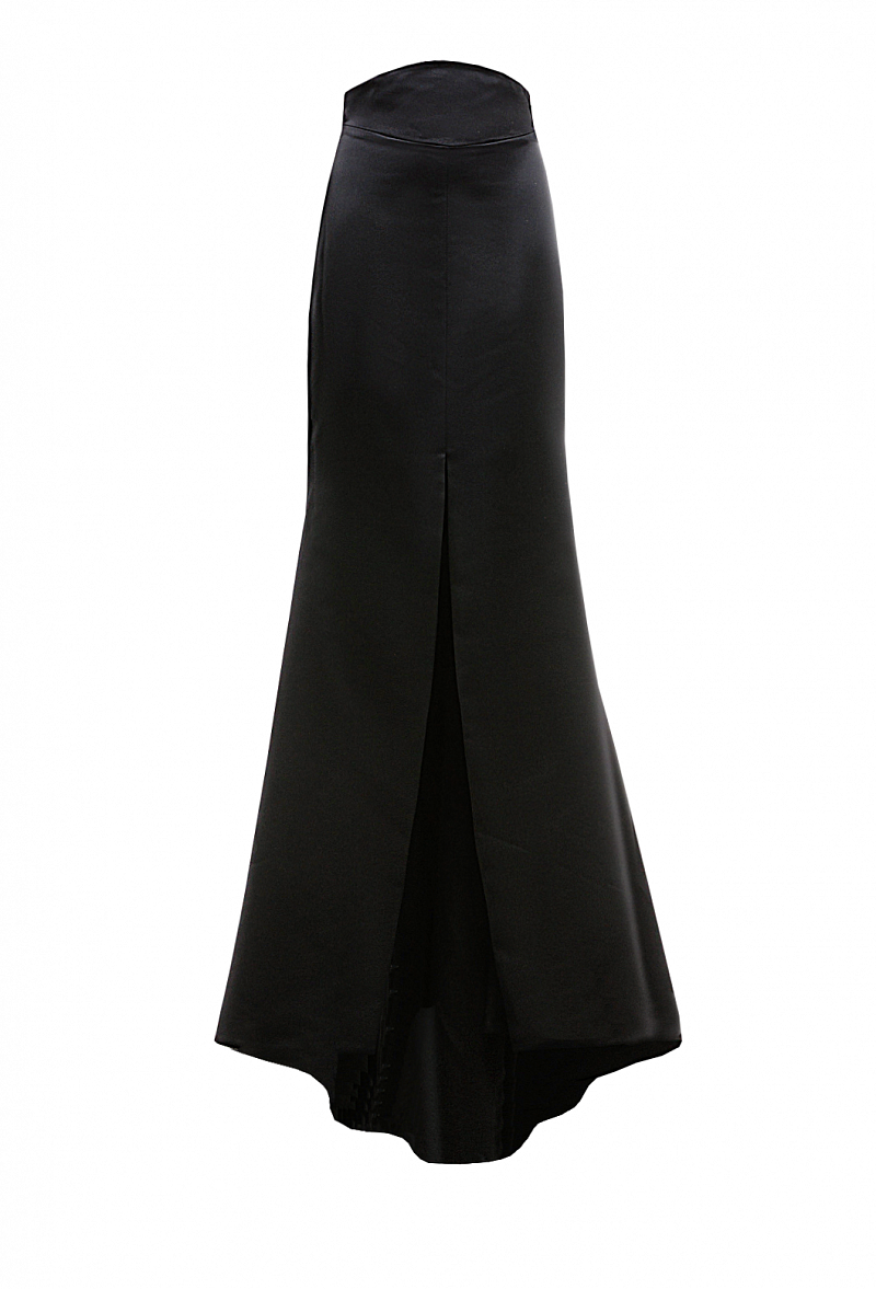 Юбка, длина макси, расклешенная к низу, черная. Разрез спереди.