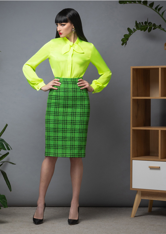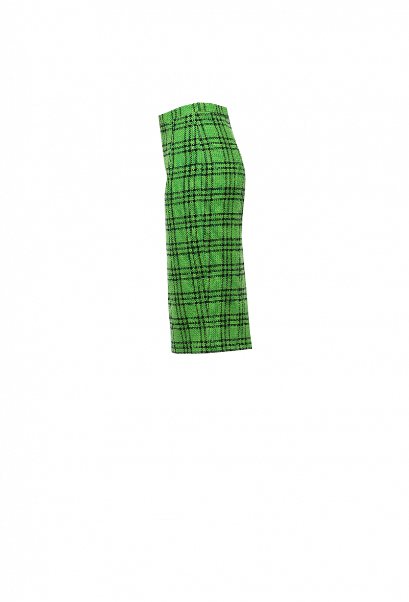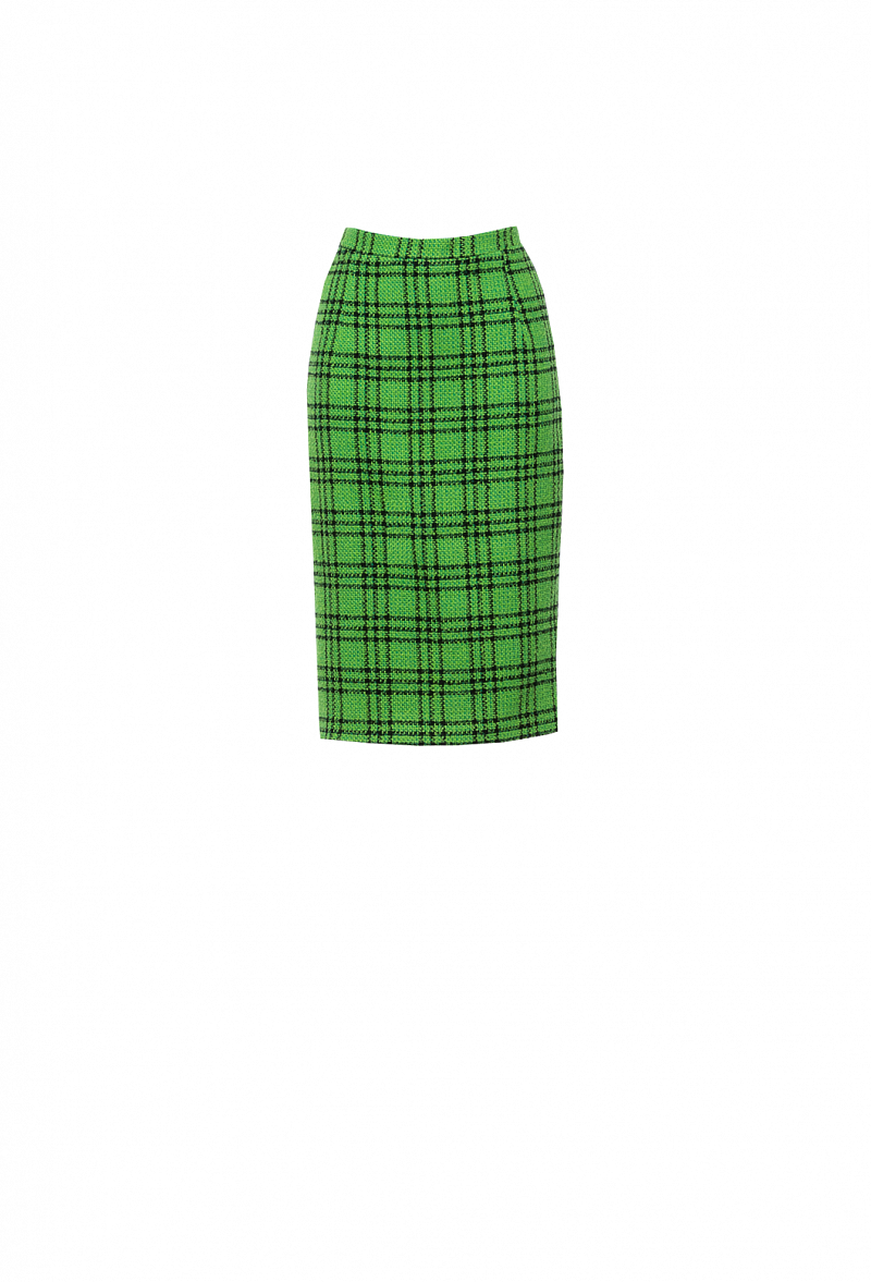 Юбка-карандаш зеленая в клетку со шлицей сзади.