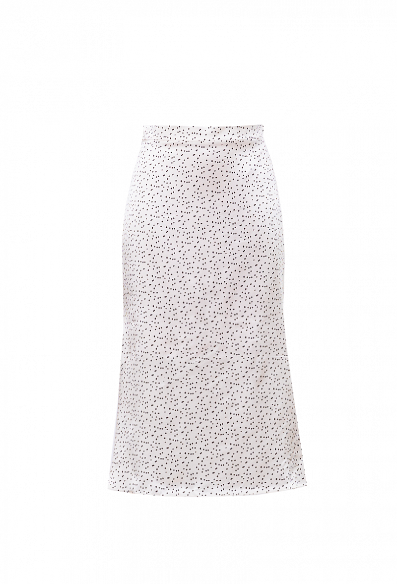 Юбка шёлковая годе белая с черным горошком 02-05-22 SS