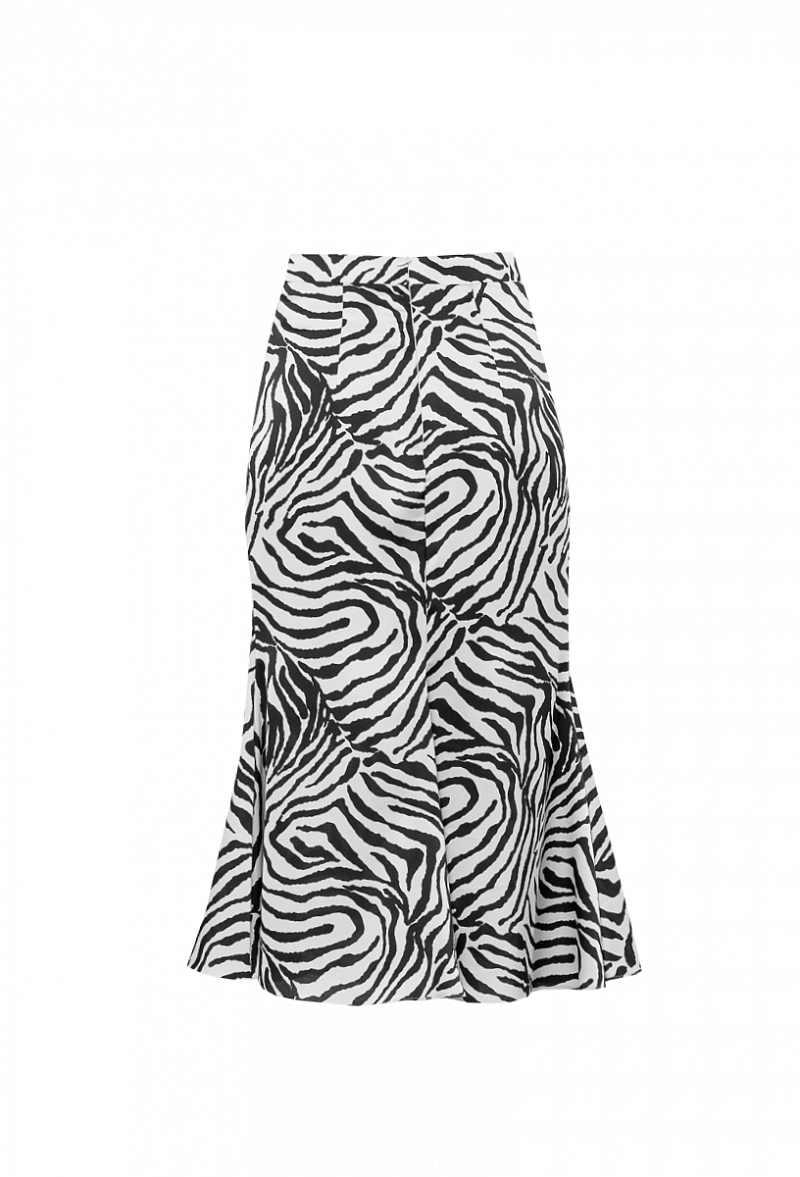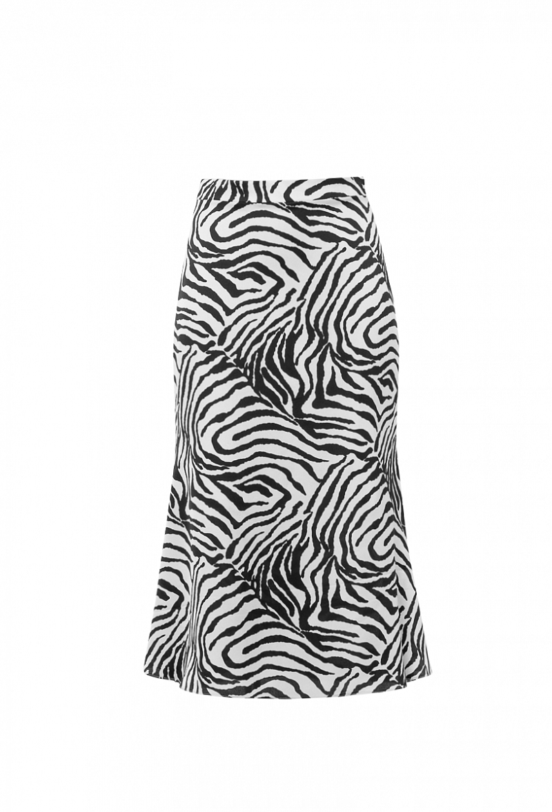 Юбка шёлковая годе бежевая с черным рисунком 02-07-22 SS