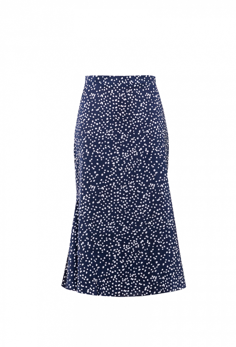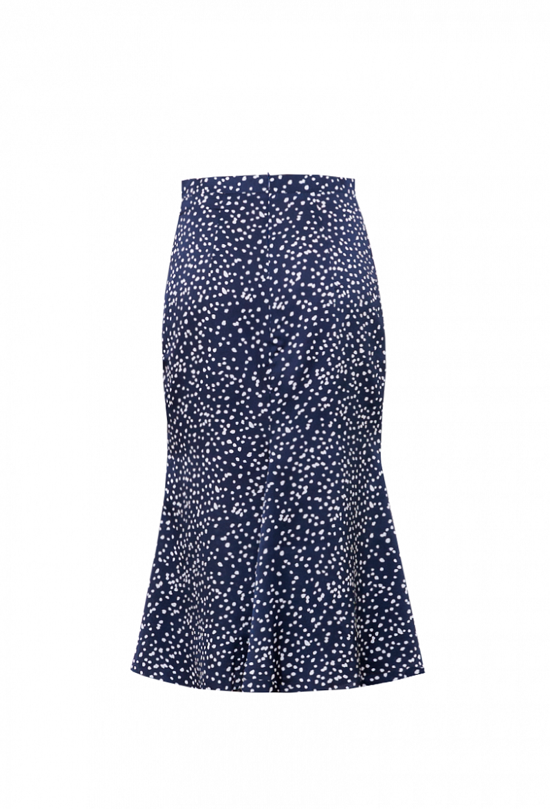 Юбка шёлковая годе синяя в белый горошек 02-01-22 SS