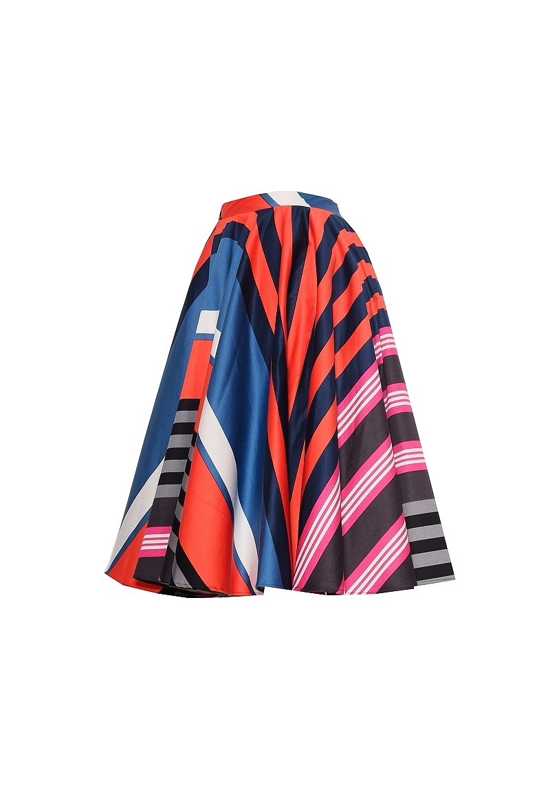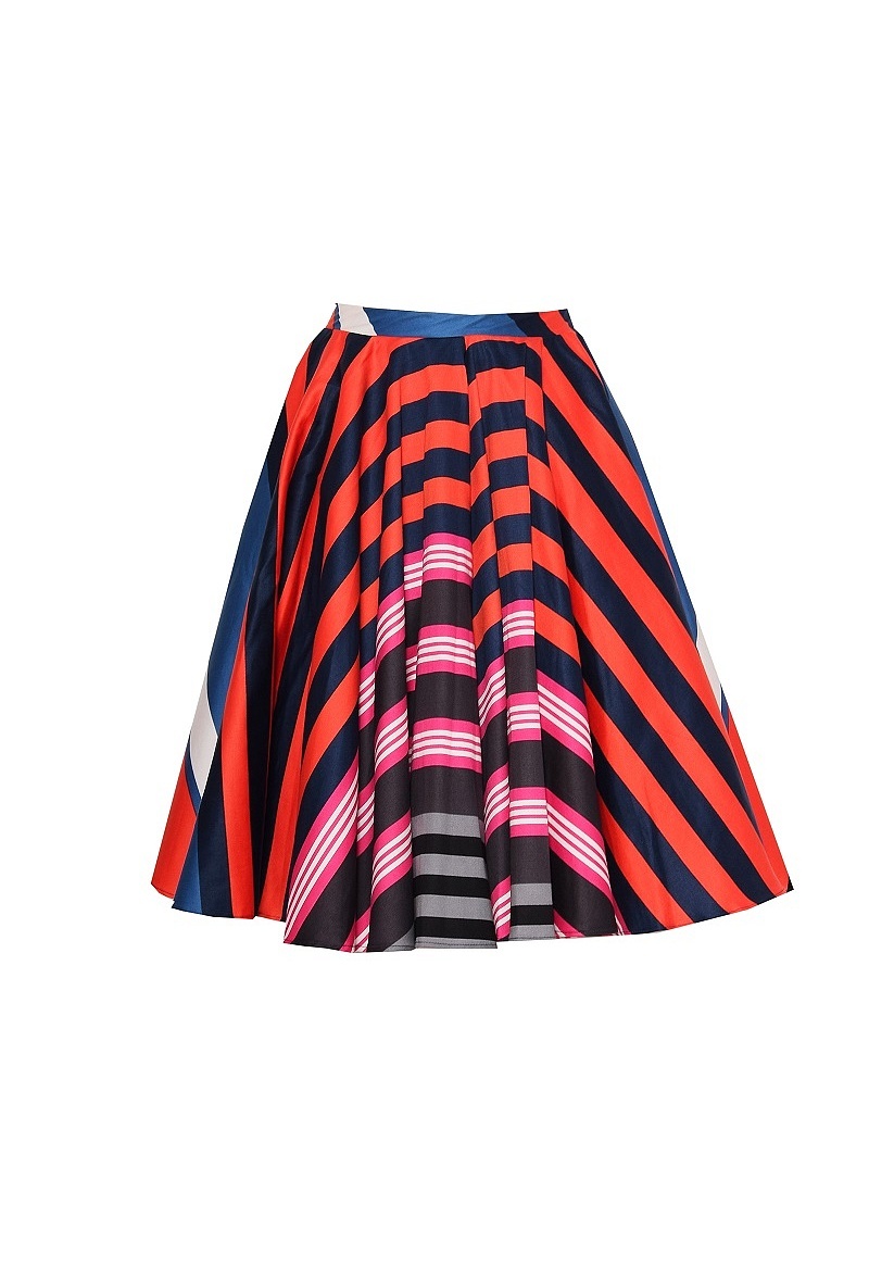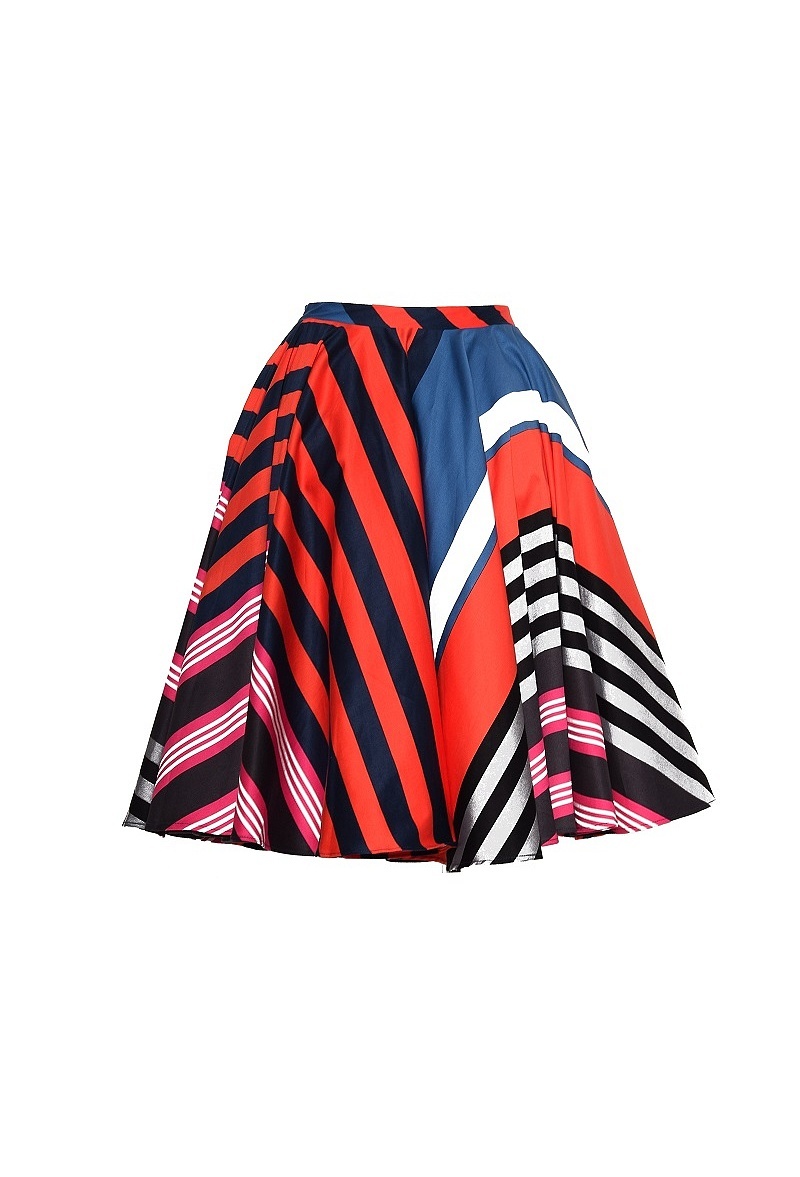 Юбка-солнце с полосатым принтом и мягкими складками по линии талии.