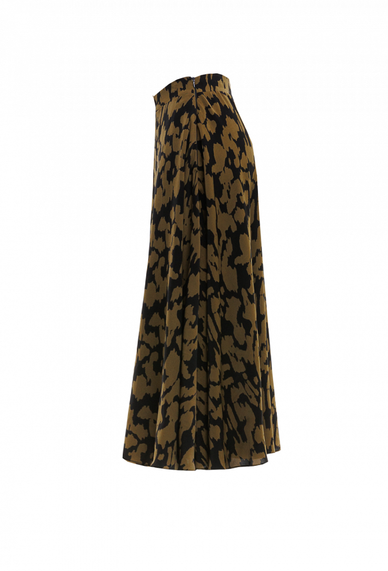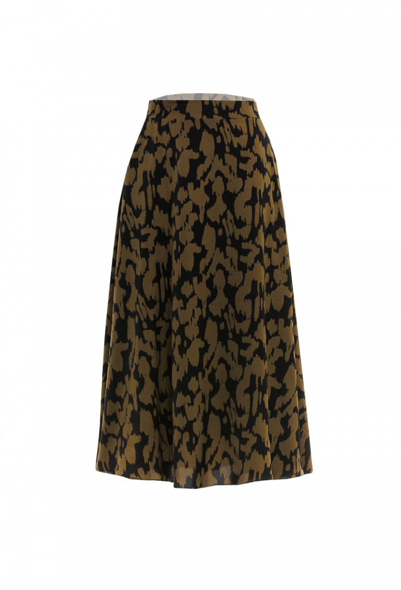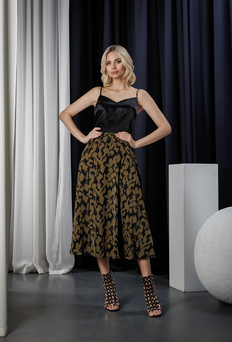 Юбка трапеция на подкладке с поясом, длина миди. Застежка молния сбоку.