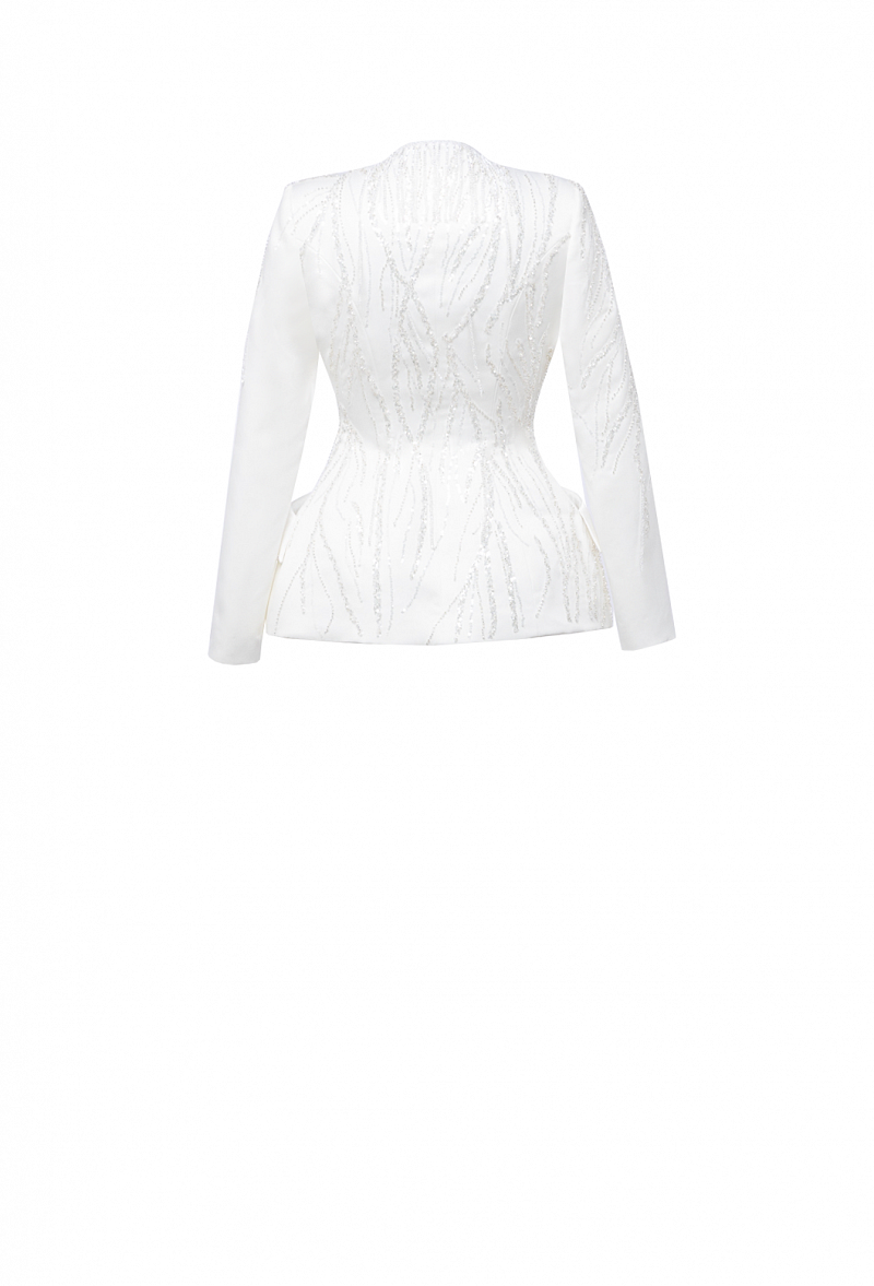 Жакет c баской и отложными карманами расшитый вручную в стиле DIOR, с клапанами на карманах из 100% вискозы.
